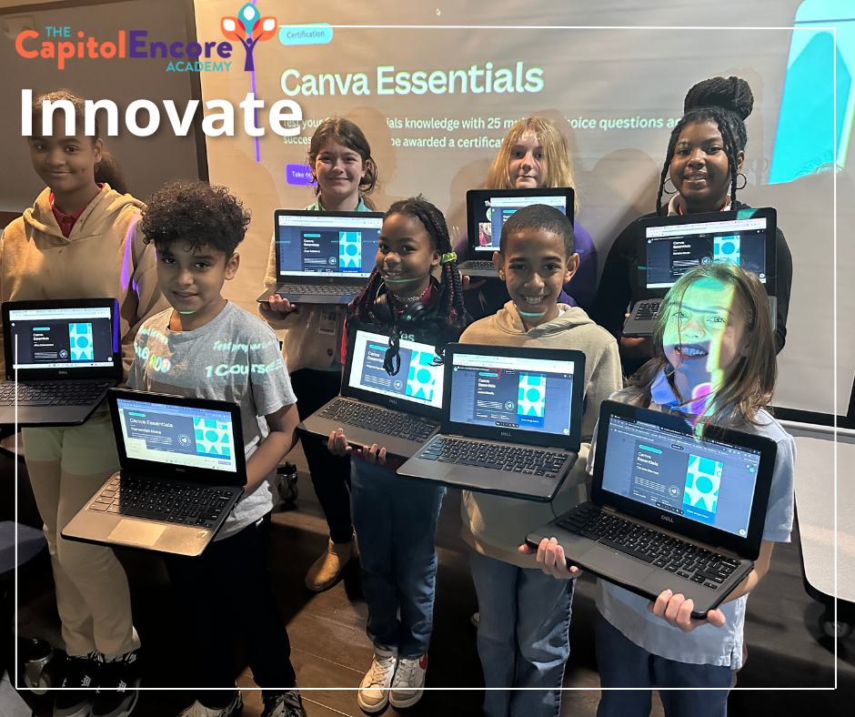 The Capitol Encore Academy will develop artists who inspire others with principles of design and artful thinking through the integration of academic excellence, virtuous character and disciplined artistry.